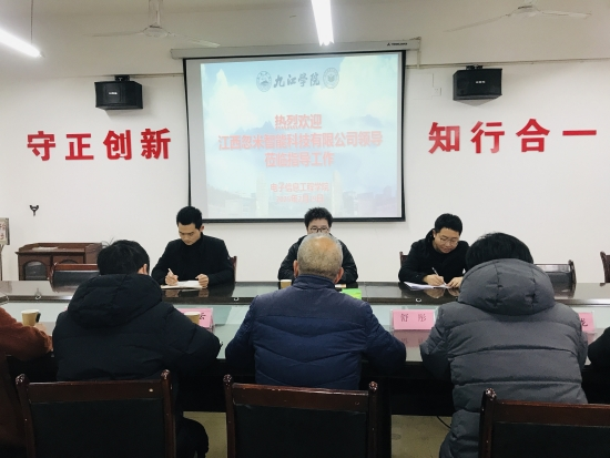 2月19日下午,江西忽米智能科技有限公司总经理方子福一行莅临我院,就校企合作相关事宜进行洽谈。学院院长邓长寿、副院长罗东云以及自动化教研室、人工智能教研室、学生科、院办负责人热情接待了方子福总经理一行,并在学院会议室举行了座谈会。